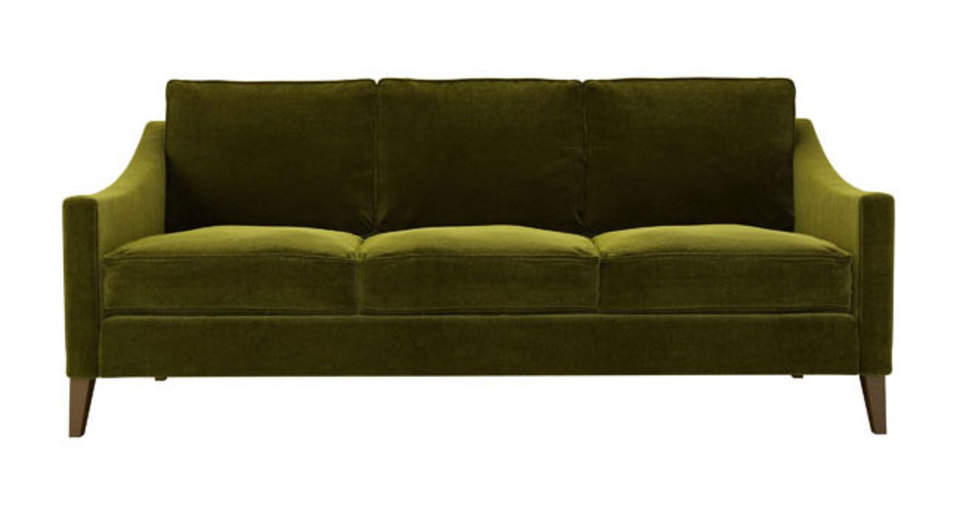 Slender, sleek and beautifully proportioned. back cushions: 100% feather color: green covers: fixed seat cushions: feather wrapped foam size: Three Seat Sofa