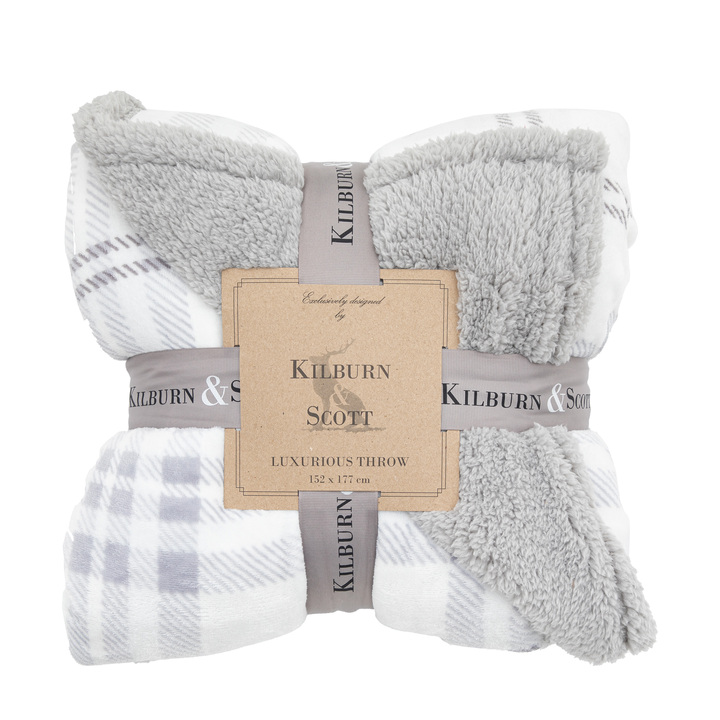 Extra cosy and warm this sherpa fleecy throw will help you nice and toasty on cold winter nights. Double sided the throw perfectly combines style and practicality, one side features a grey tartan pattern perfect for adding a touch of style to any room while the reverse fluffy sherpa fleece side will keep you nice and warm all year round. Material: Polyester Technique: Woven Care Instructions - Textiles: Max. Wash 30 Degrees / Do Not Bleach / Do Not Tumble Dry / Do Not Iron / Do Not Dry Clean