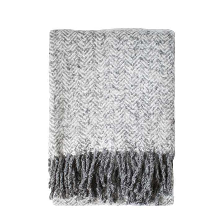 Beautifully soft mohair feel throw with two tone herringbone pattern and solid fringing detail. Material: Acrylic Technique: Woven