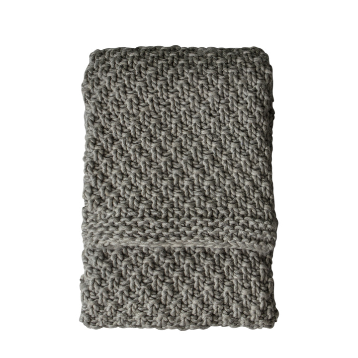 This chunky knitted moss stitched throw in grey is available in 2 colourways and crafted in India. Gives a cosy rustic feel. Material: Polyester / Acrylic Fabric Weight: 710 gsm Technique: Knitted Care Instructions - Textiles: Spot Clean Only / Do Not Bleach / Do Not Tumble Dry / Do Not Iron / Do Not Dry Clean