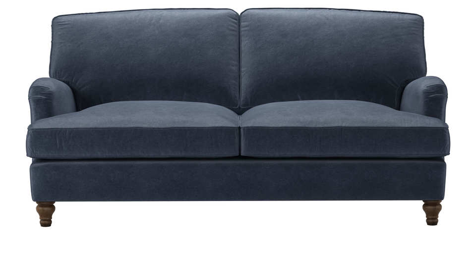 The Bluebell is an undisputed classic. Its turned wooden legs give it a very elegant, understated feel. Supremely comfortably and a real pleasure to live with, whether in a classic or modern setting. The Bluebell is also available as a 'breakdownable' sofa which means even if your home has restricted access you can still enjoy Bluebell's charm and comfort as we will deliver it to you in pieces and assemble in upon arrival. back cushions: feather and quallofil fibre color: Blue, Grey covers: fixed with removable cushion covers seat cushions: feather wrapped foam size: 2.5 Seat Sofa Bed