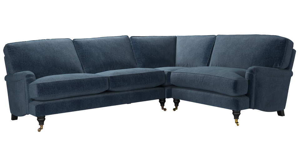 A classic design and one of our most popular sofas. back cushions: feather and fibre color: blue covers: fixed seat cushions: feather wrapped foam size: Left Hand 2.5 Seat With Right Hand Loveseat