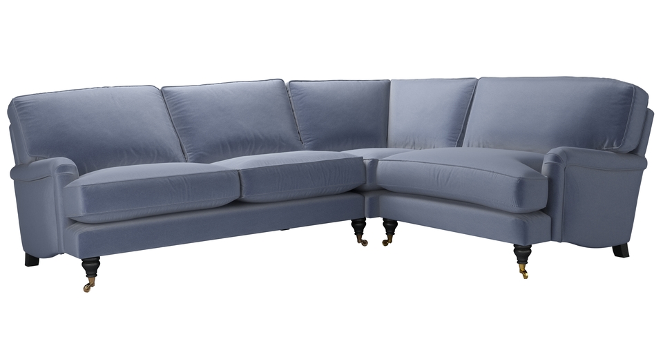A classic design and one of our most popular sofas. back cushions: feather and fibre color: blue covers: fixed seat cushions: feather wrapped foam size: Left Hand 2.5 Seat With Right Hand Loveseat