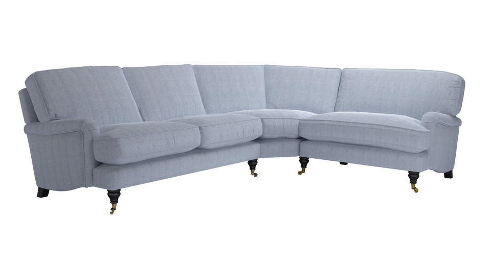 A classic design and one of our most popular sofas. back cushions: feather and fibre color: blue covers: fixed seat cushions: feather wrapped foam size: Left Hand 2.5 Seat With Right Hand Loveseat