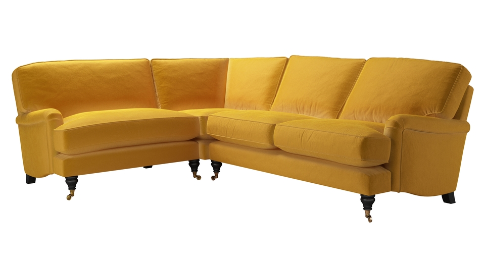A classic design and one of our most popular sofas. back cushions: feather and fibre color: yellow covers: fixed seat cushions: feather wrapped foam size: Left Hand Loveseat With Right Hand 2.5 Seat