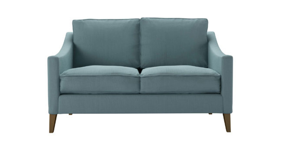 Slender, sleek and beautifully proportioned. back cushions: 100% feather color: blue covers: fixed seat cushions: feather wrapped foam size: Two Seat Sofa