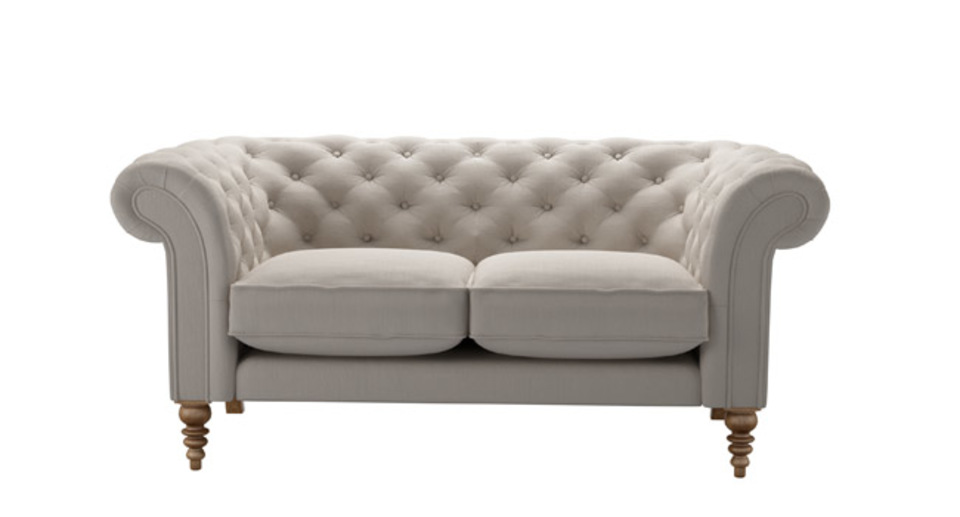 The Chesterfield gets a leggy new look. back cushions: see website color: grey,natural covers: see website seat cushions: see website size: Two Seat Sofa