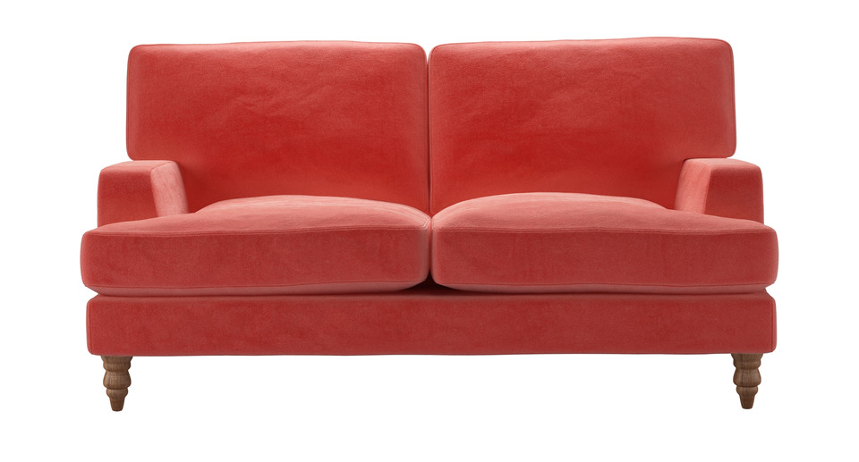 Our Isla mixes drawing room elegance with luxurious lounging. It sits on insanely smart turned wooden legs, and would grace any environment with refined style. As beautiful as the Scottish island it's named after. back cushions: feather and quallofil fibre color: pink covers: removable covers seat cushions: fibre wrapped foam size: Two Seat Sofa