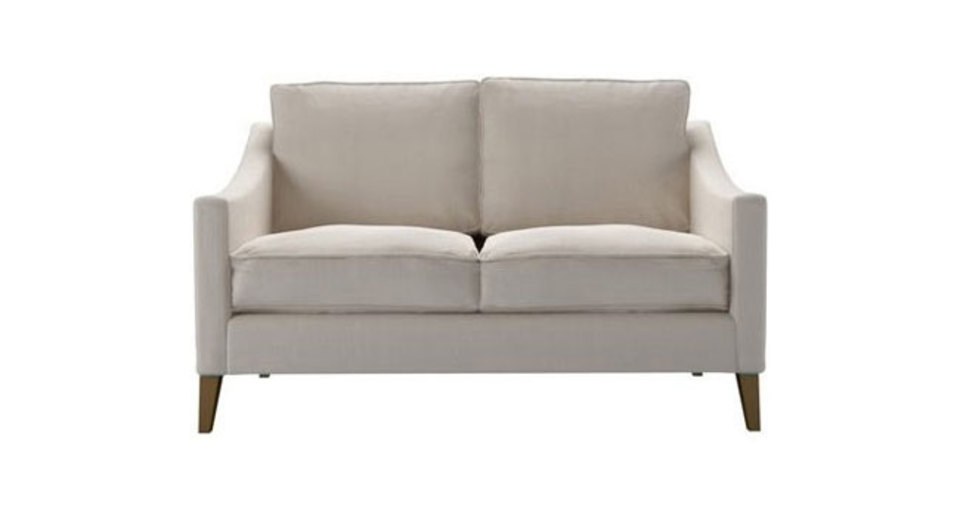 Slender, sleek and beautifully proportioned. back cushions: 100% feather color: natural covers: fixed seat cushions: feather wrapped foam size: Two Seat Sofa