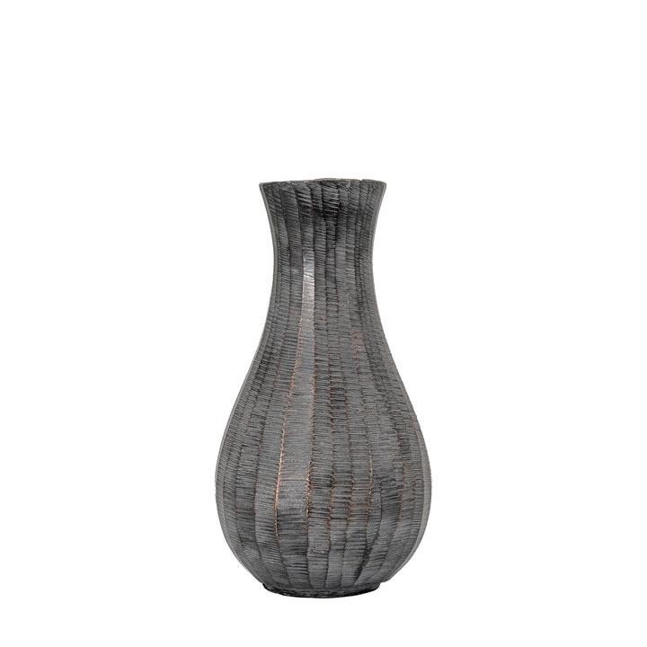 With an organic flowing shape and deep grey linear pattern, this vase is elegantly sophisticated. Place with the coordinating vases for the most stylish look. Material: Aluminium Product Zone: Indoor