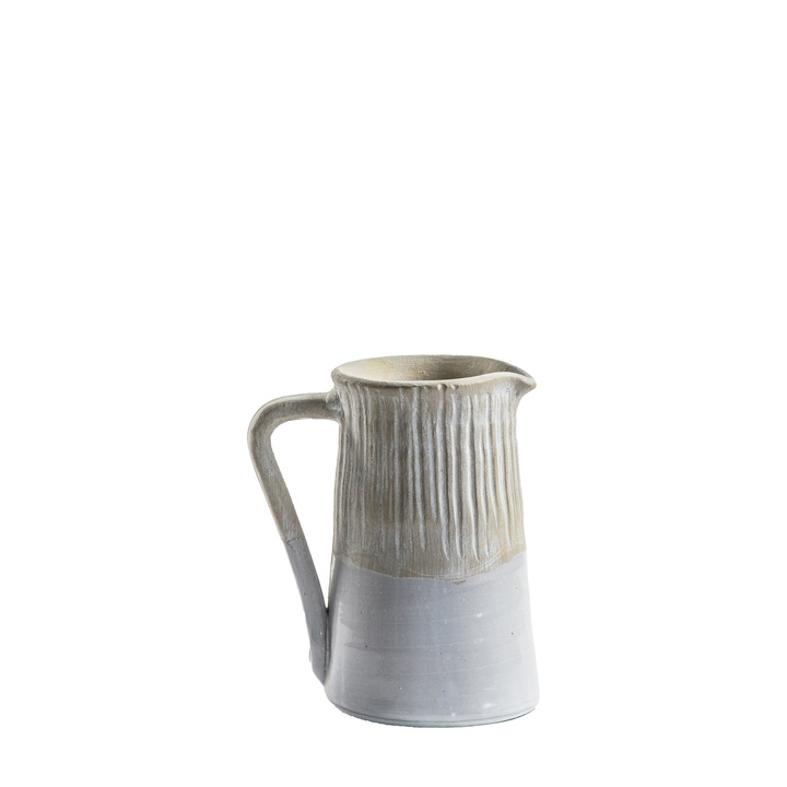 This lovely jug offers an interesting design, with the rough textured top part complemented by the glossy glazed bottom section. A smaller version is also available. Material: Stoneware Product Zone: Indoor