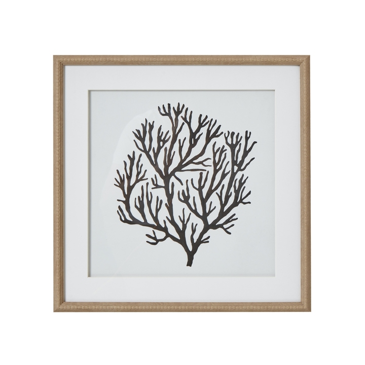 Bring the mesmerizing beauty of marine life into your customers' homes with this striking coral art piece. The intricate black coral silhouette, meticulously detailed against a crisp white background, creates a sophisticated coastal statement that resonates with both modern and traditional interiors. The natural wooden frame, adorned with delicate beading, adds texture and warmth while perfectly complementing the botanical artwork. At 60cm square, this piece makes an immediate impact whether displayed individually or as part of a curated gallery wall alongside other marine-inspired prints. Perfect for boutique hotels, coastal properties, and design-conscious homes, this versatile artwork pairs beautifully with neutral palettes, natural textures, and ocean-inspired décor. Style with weathered woods, woven elements, and touches of brass for an elegant coastal aesthetic, or incorporate into contemporary spaces for a refined organic accent. Ideal for retailers specializing in luxury home accessories, this piece appeals to customers seeking sophisticated coastal art without overwhelming beachy themes. The timeless design ensures year-round appeal and strong sales potential across multiple interior styles.