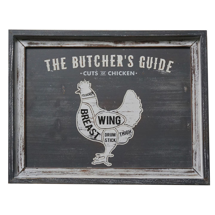 Transform your culinary space into an artisanal wonderland with this distinctive grey-toned wall plaque showcasing the traditional butcher's chicken cuts diagram. Perfect for modern farmhouse kitchens, industrial-chic spaces, or rustic bistro settings, this piece adds a professional touch while celebrating culinary heritage. Pair with other butcher's cuts plaques from the collection for a cohesive gallery wall, or complement with vintage-inspired kitchen accessories like wooden chopping boards and metallic accents. The versatile grey palette harmonizes beautifully with exposed brick, weathered wood surfaces, and stainless steel appliances, making it an essential piece for creating an authentic kitchen atmosphere. Material: WOOD Colour: WHITE Delivery Size: Small Weight: 1.4100