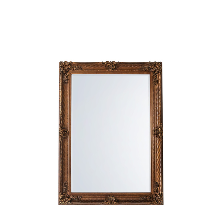 Beautiful hand crafted baroque style wood framed mirror. Material: Glass / Resin / Wood Type - Mirror: Wall Style - Mirror: Baroque Shape - Mirror: Rectangle Hanging Orientation: Both - Portrait & Landscape Glass Type: Bevelled Frame Width: 97mm Fixing Type: D-Ring