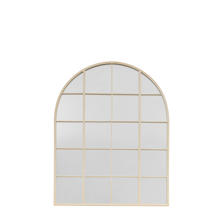 A beautiful arched top window-style mirror in a soft white finish. Also available in a black finish. Material: Iron / Glass / MDF Type - Mirror: Wall Style - Mirror: Window Shape - Mirror: Arched Hanging Orientation: One Way Only Glass Type: Plain Glass Size mm: 945x755 Frame Width: 20mm Fixing Type: Keyhole