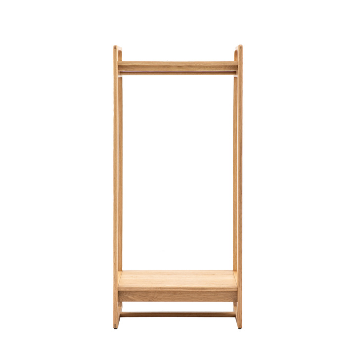 Crafted from the finest oak and structural oak veneers where practical, with a natural finish, this stunning open wardrobe offers stylish elegant design. It features a top and low shelf, along with a hanging rail to give a beautiful storage solution. Matching pieces are available. Material: Oak / Oak Veneered MDF Product Zone: Indoor Shape: Rectangle Leg / Feet Height: 152mm Clearance to Floor: 152mm Distance between shelves: 310mm Assembly Required: Yes - full Anti Topple Kit: Yes