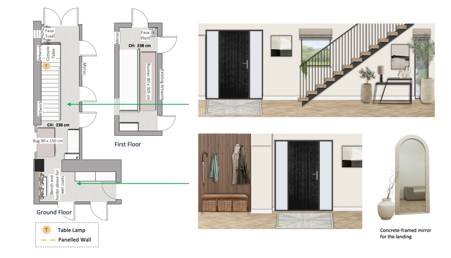 I have specified all items based on the dimensions and information you provided in your brief but it’s always worth double-checking that you’re happy with the size of larger furniture items/light fittings before placing your order. Also that you have the appropriate delivery access into your property.