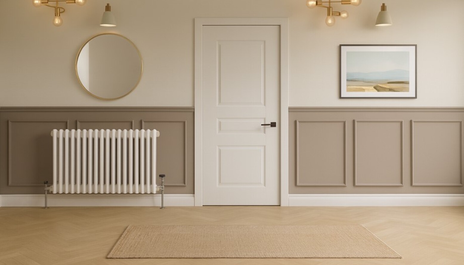 Heating is provided by a classic white horizontal radiator, blending seamlessly into the overall design.