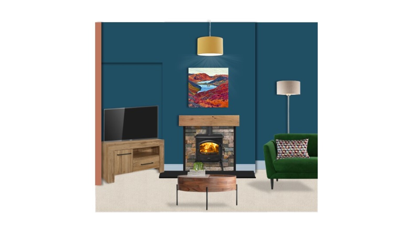 I’m delighted to share your final room design and product suggestions. Don’t forget to click on the video under your moodboard to watch your virtual design presentation!