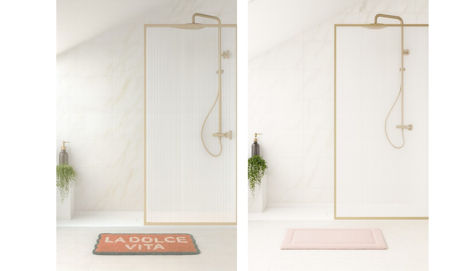 Complementing the aesthetics is the Harbour i8 Brushed Brass Screen, designed for walk-in showers, which boasts easy-clean coated glass. Below, the Drench MineralStone Low Profile Shower Tray sits gracefully, ensuring a seamless transition to the shower area.