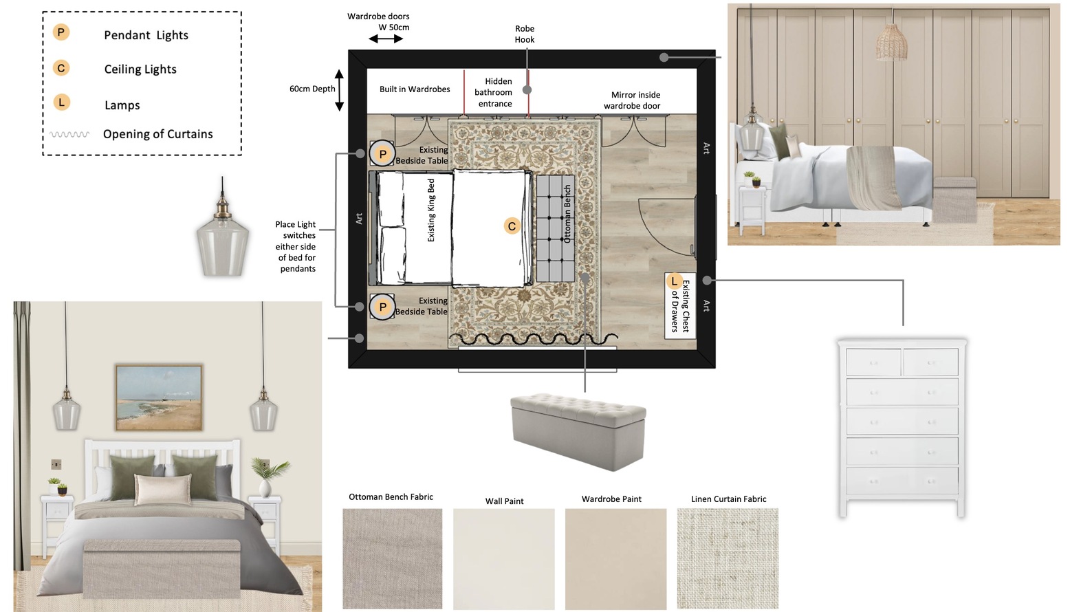 Check out this room design for our client complete with 3D visuals and floorplan.