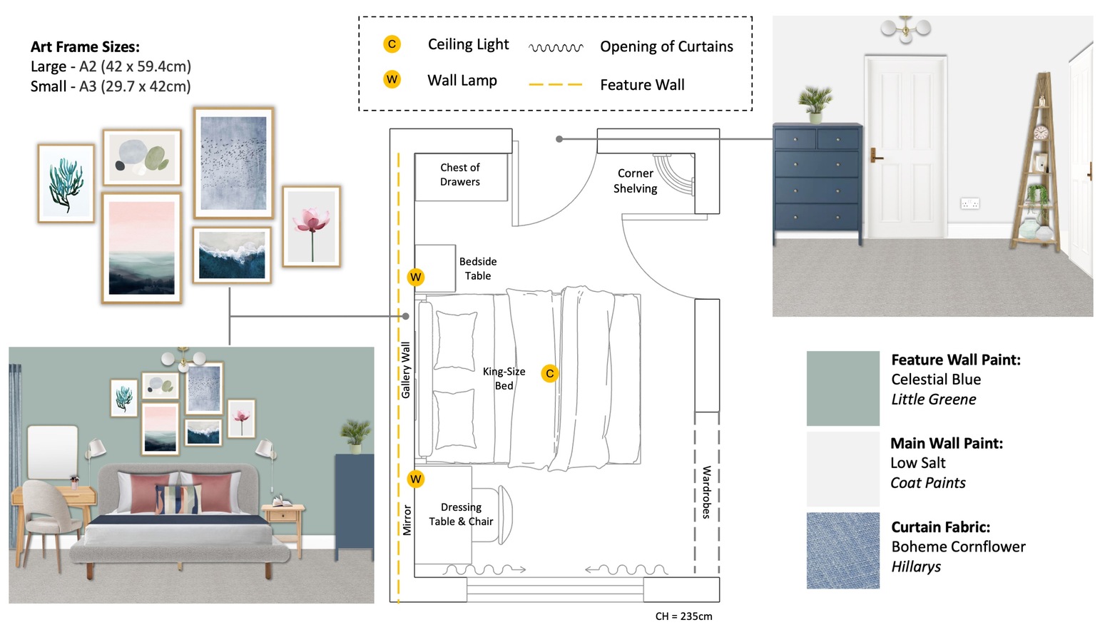Check out this room design for our client complete with 3D visuals and floorplan.