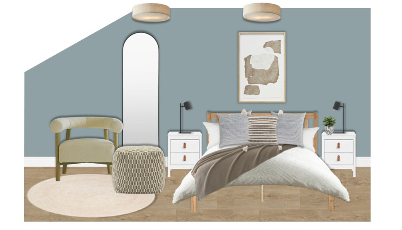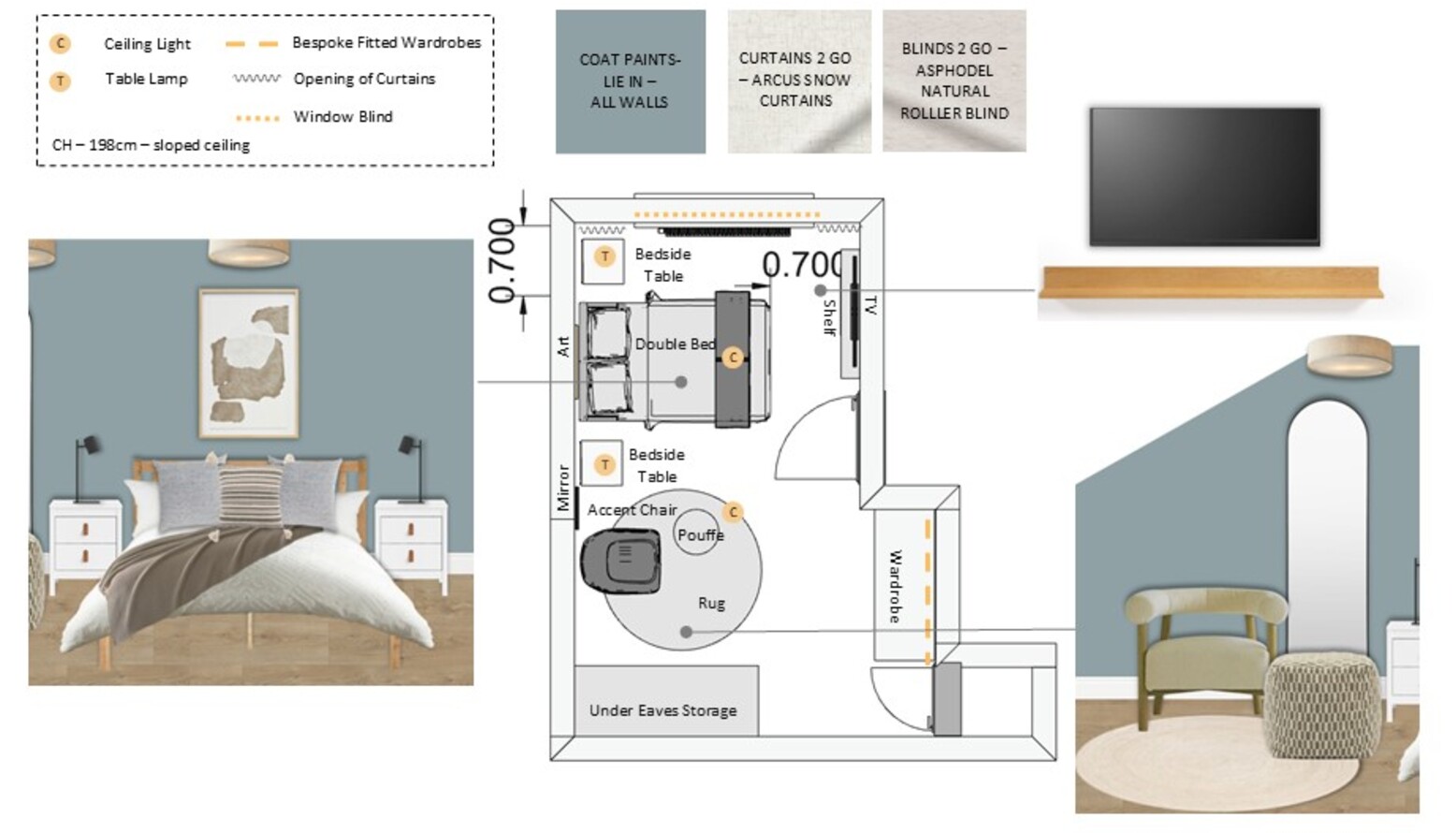 Check out this room design for our client complete with 3D visuals and floorplan.