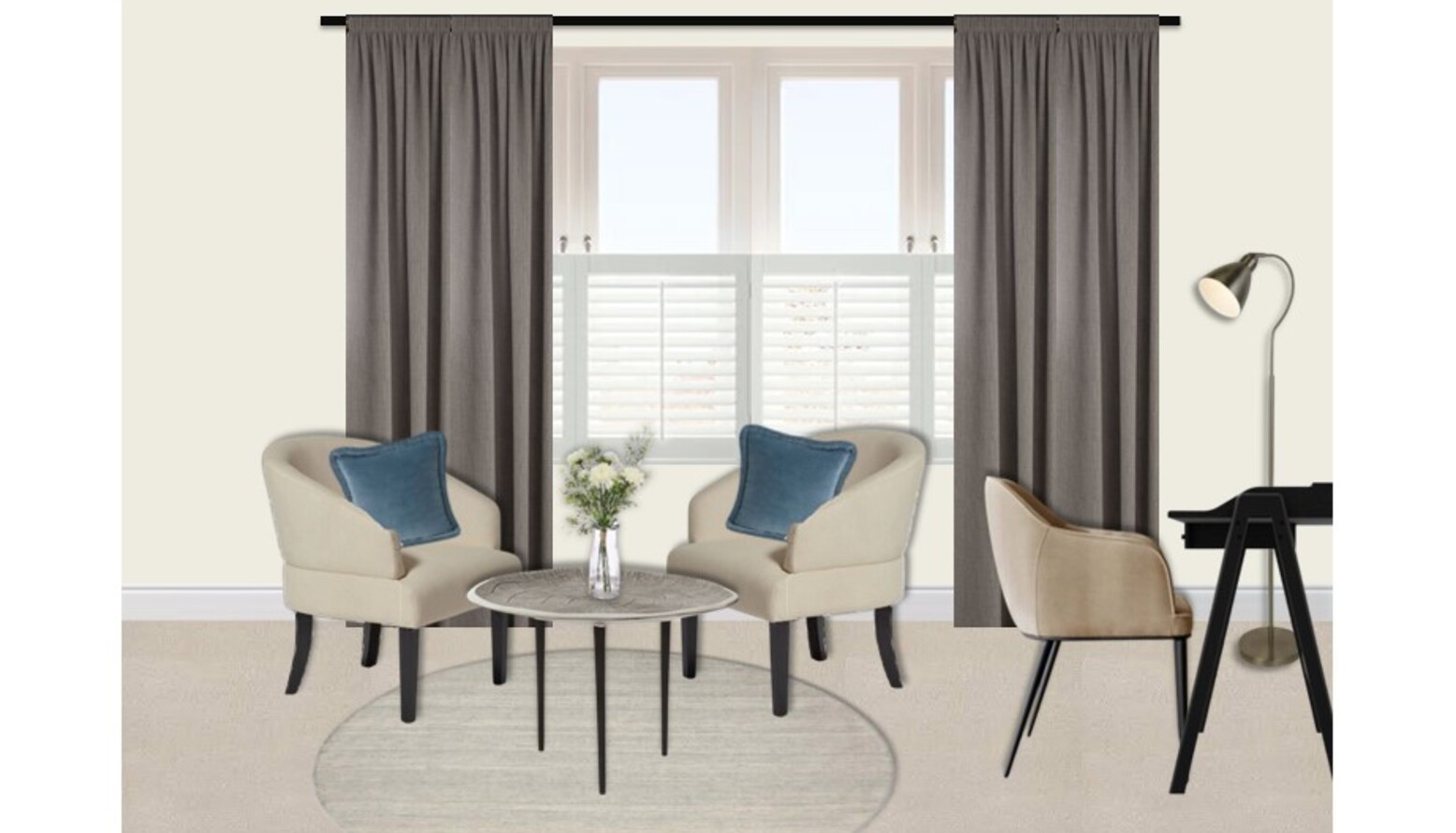 Check out this room design for our client complete with 3D visuals and floorplan.