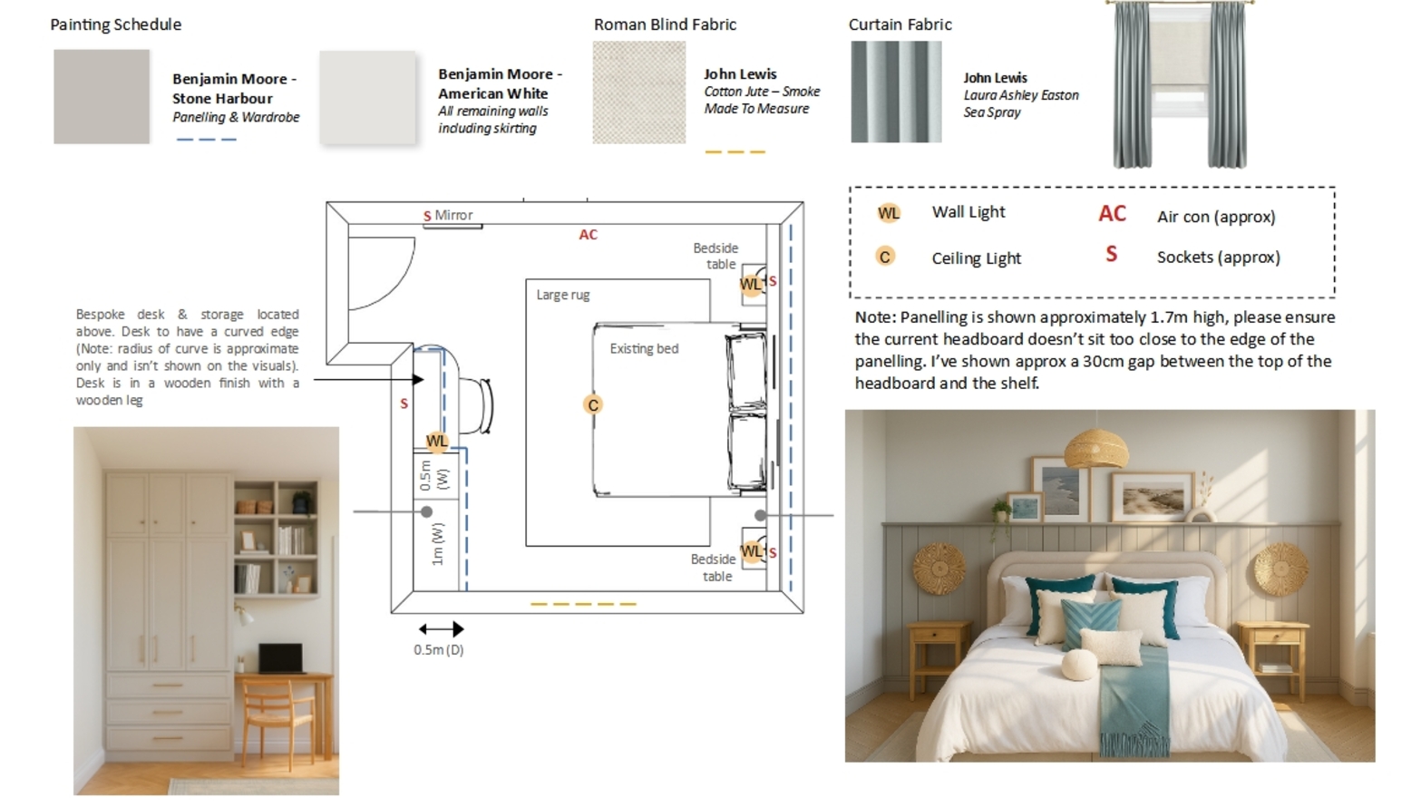 Check out this room design for our client complete with 3D visuals and floorplan.