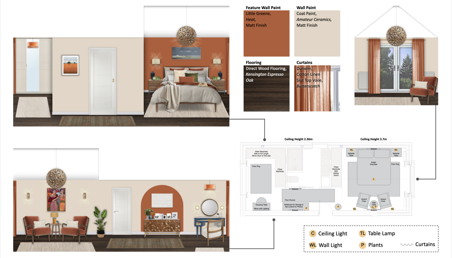 Check out this room design for our client complete with 3D visuals and floorplan.