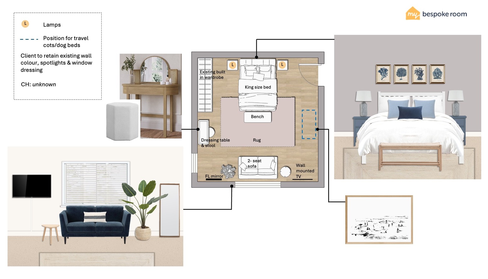 Check out this room design for our client complete with 3D visuals and floorplan.