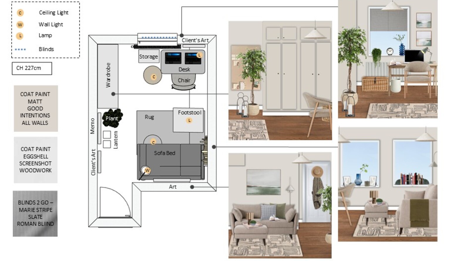 Check out this room design for our client complete with 3D visuals and floorplan.