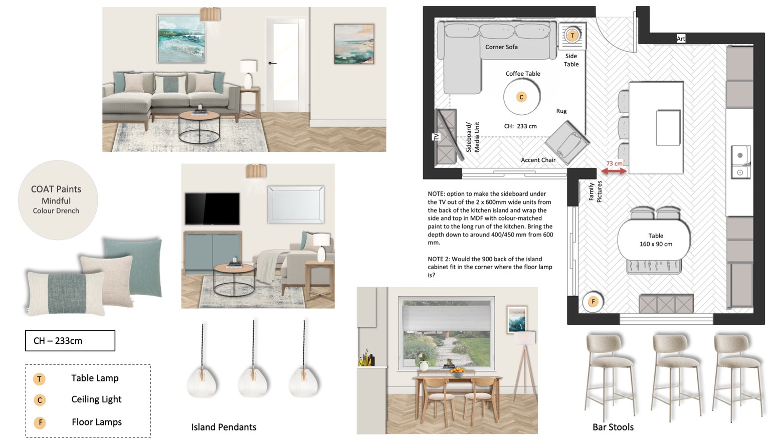 I’m delighted to share your final room design and product suggestions. Don’t forget to click on the video under your moodboard to watch your virtual design presentation!