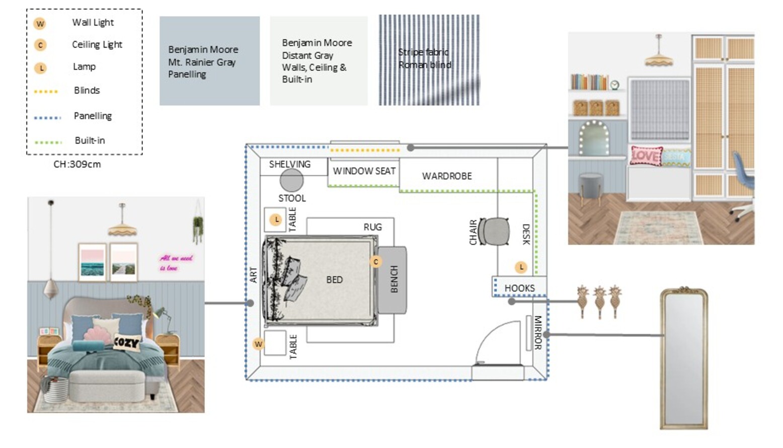 Check out this room design for our client complete with 3D visuals and floorplan.