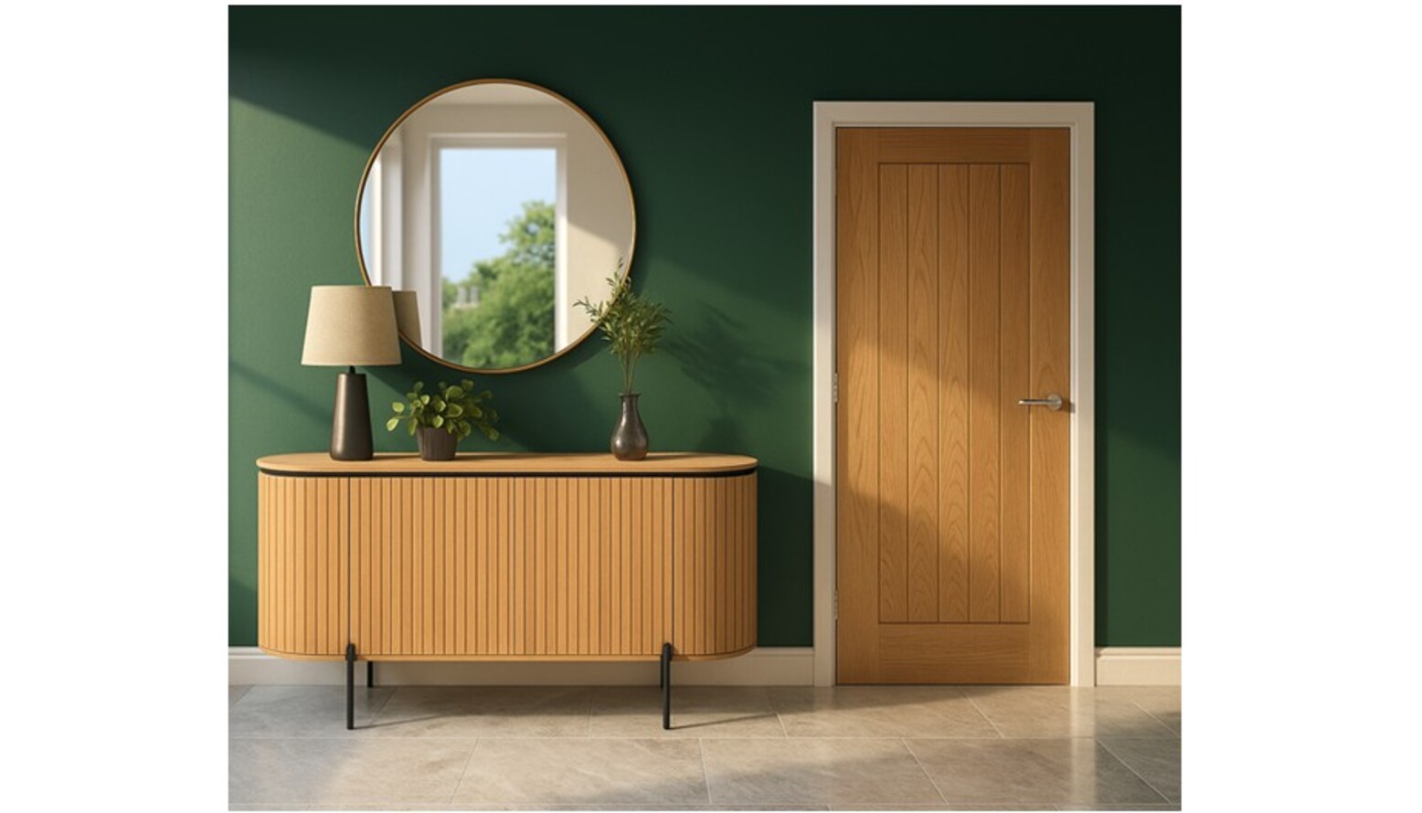On the wall, two abstract framed prints in shades of pink and green create a chic focal point, drawing the eye and adding a personalized touch.