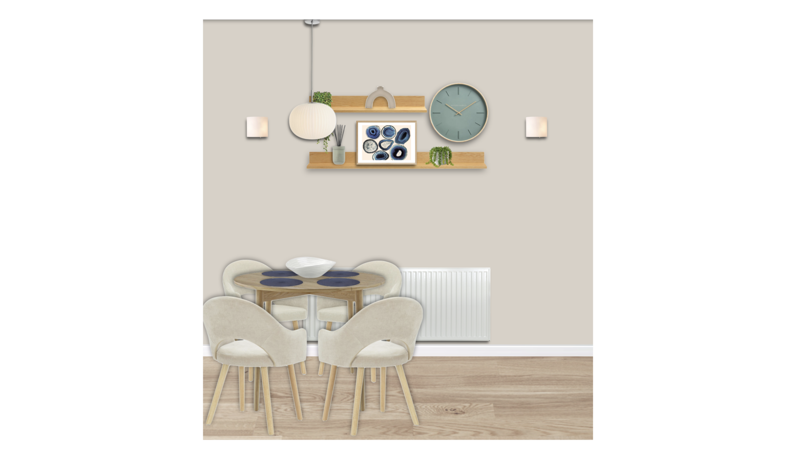 I’m delighted to share your final room design and product suggestions. Don’t forget to click on the video under your moodboard to watch your virtual design presentation!