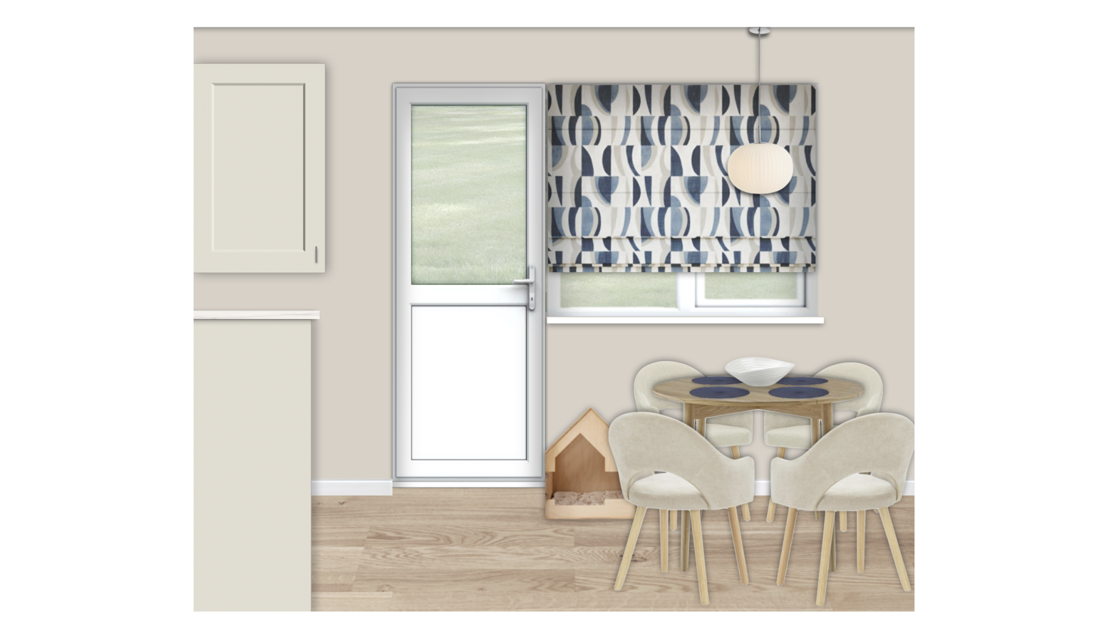 I have included some great options for the style of window dressing in your room. All window dressing needs to be ordered in the correct size for your window(s) - to do this simply click the link on the window dressing suggestions, enter the size and you can place the order directly with the retailer.