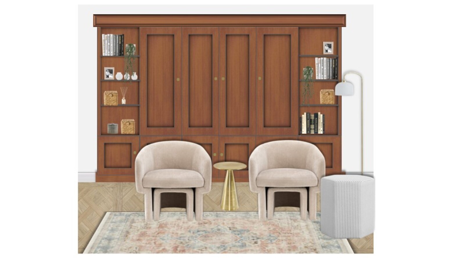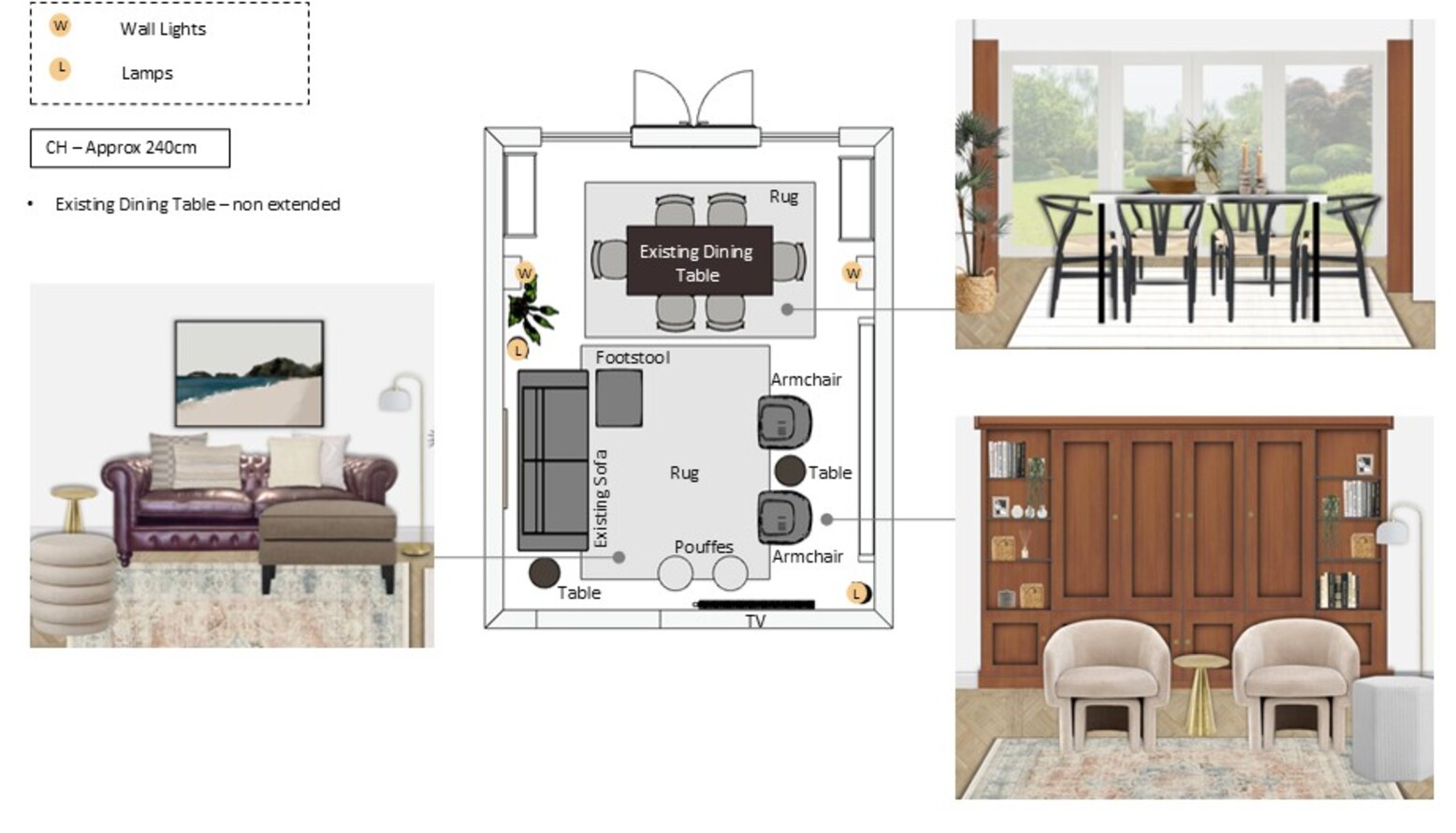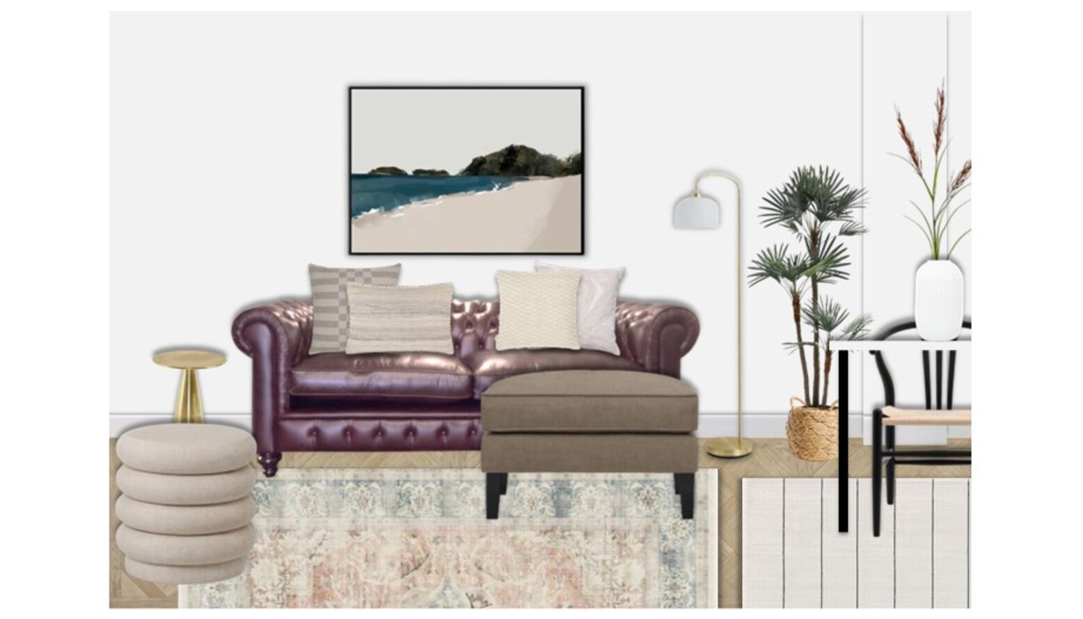 I’m delighted to share your final room design and product suggestions. Don’t forget to click on the video under your moodboard to watch your virtual design presentation!
