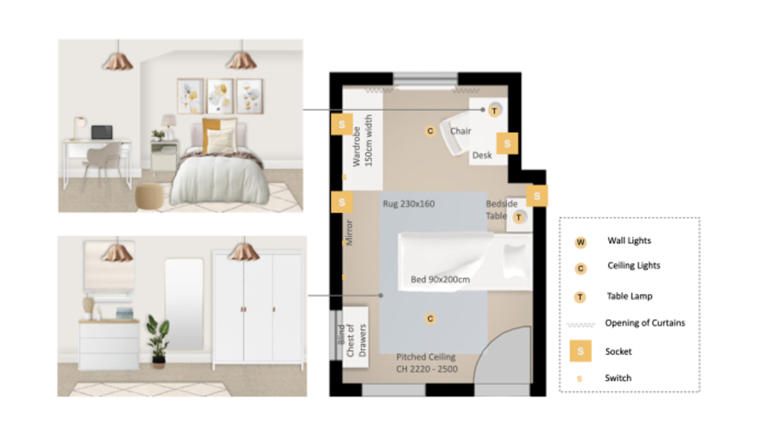 I have specified all items based on the dimensions and information you provided in your brief but it’s always worth double checking that you’re happy with the size of larger furniture items/light fittings before placing your order. Also that you have the appropriate delivery access into your property.
