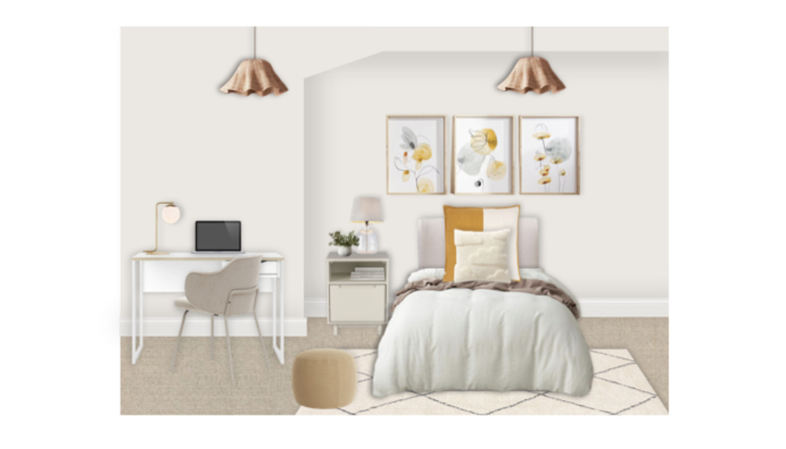 I’m delighted to share your final room design and product suggestions. Don’t forget to click on the video under your moodboard to watch your virtual design presentation!