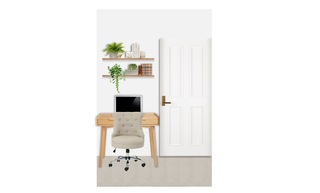 The home office features a soothing and contemporary design with a neutral color palette that promotes focus and productivity.