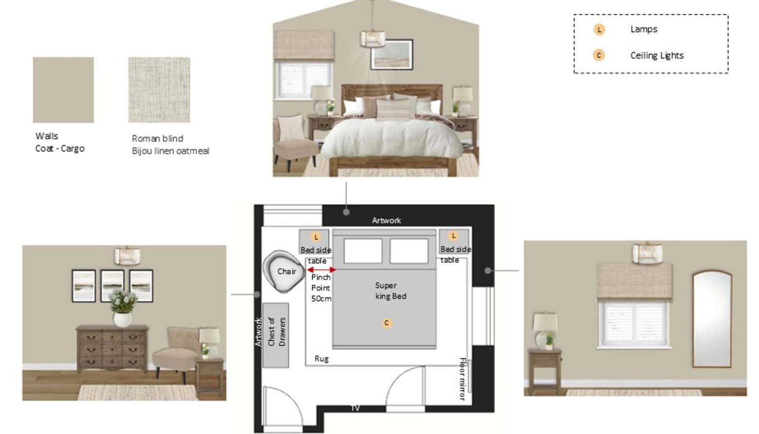 I’m delighted to share your final room design and product suggestions. Don’t forget to click on the video under your moodboard to watch your virtual design presentation!