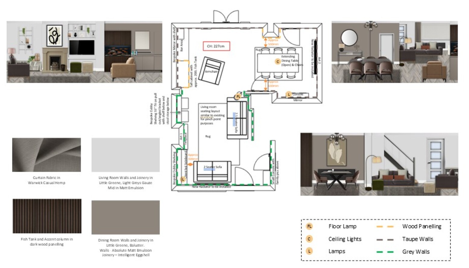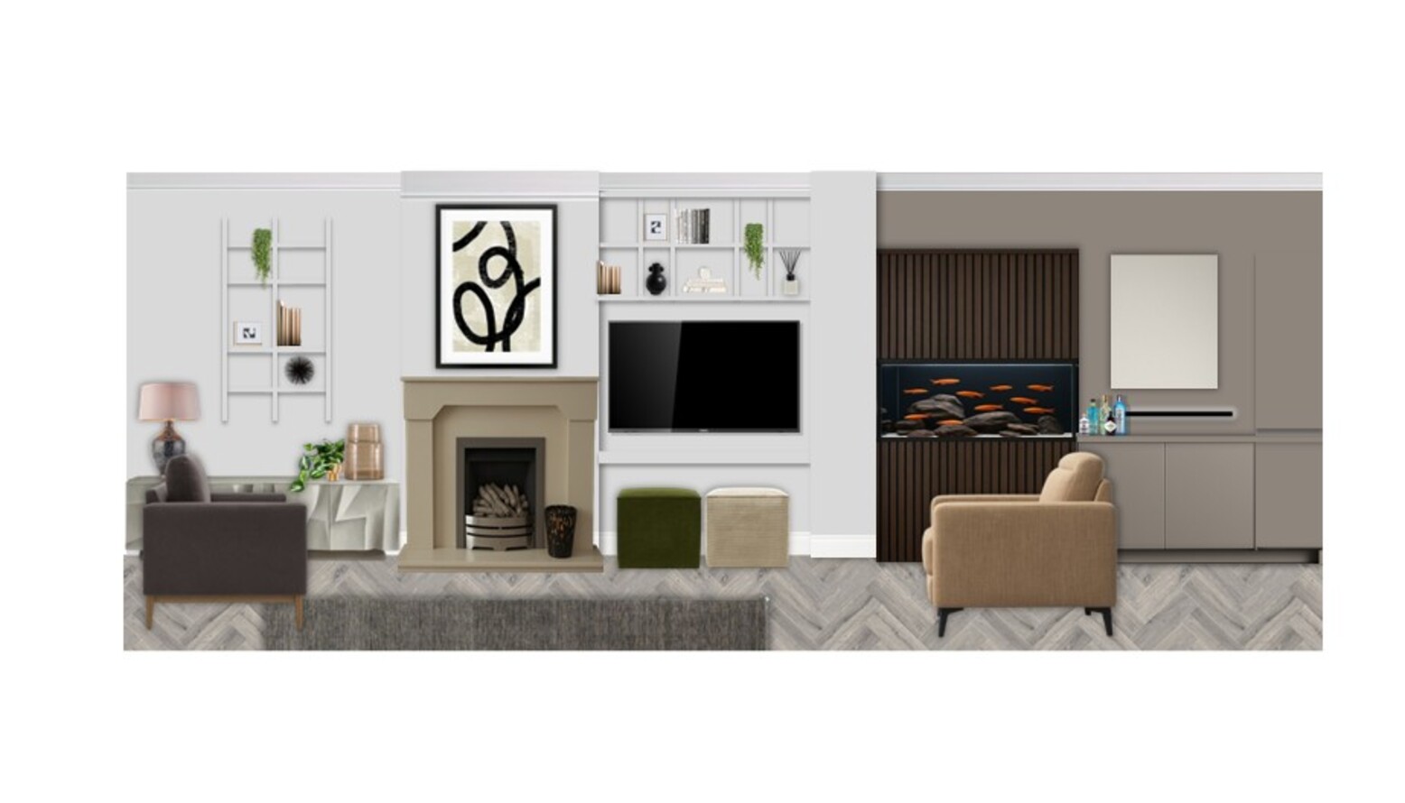 Check out this room design for our client complete with 3D visuals and floorplan.