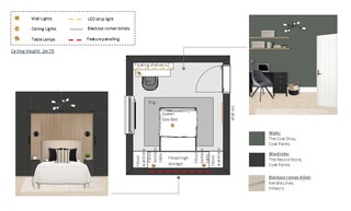 Overall, the color palette is neutral with accents of black and wood, creating a calm and inviting sanctuary that reflects the client's style.