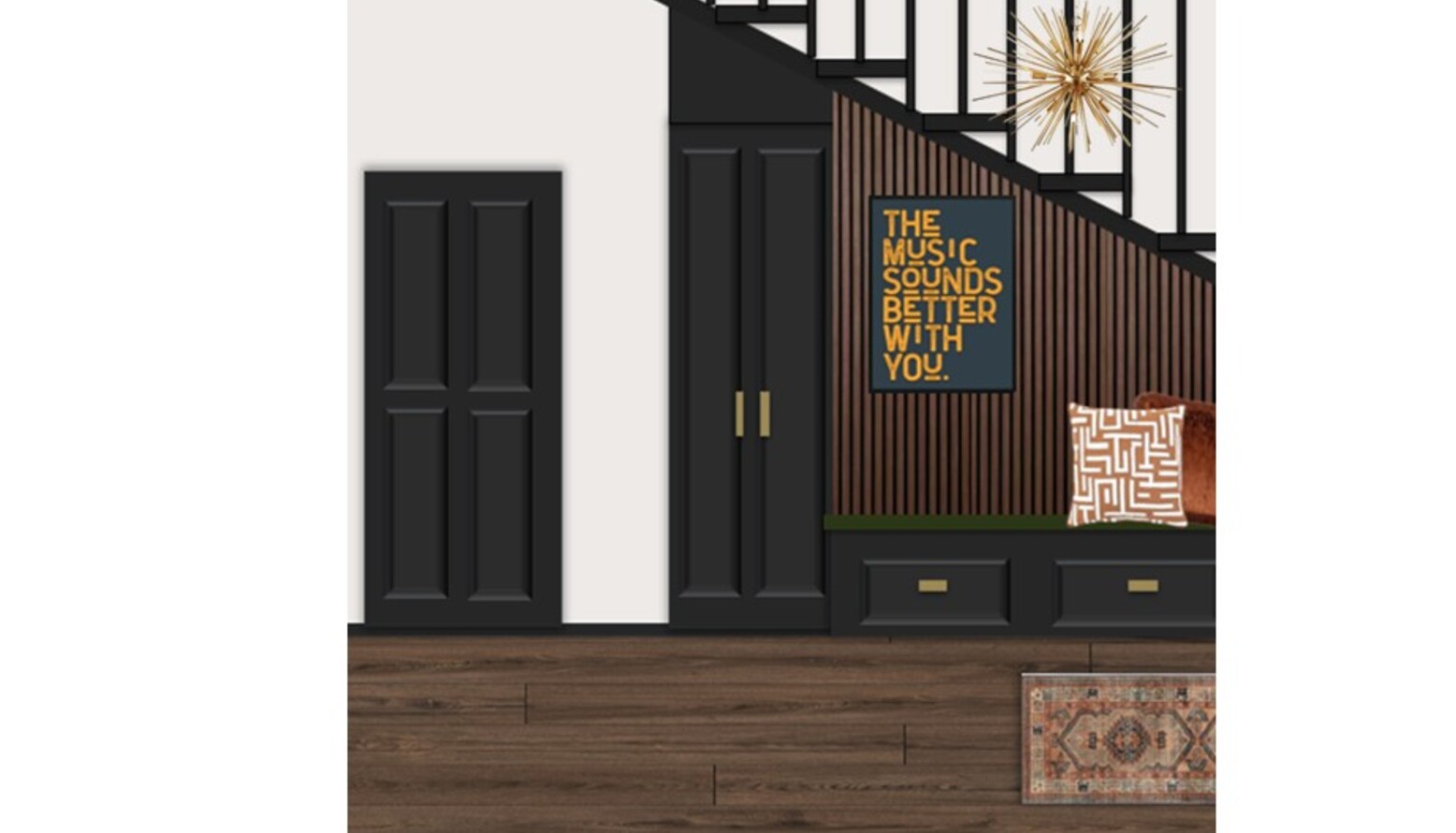 Check out this room design for our client complete with 3D visuals and floorplan.