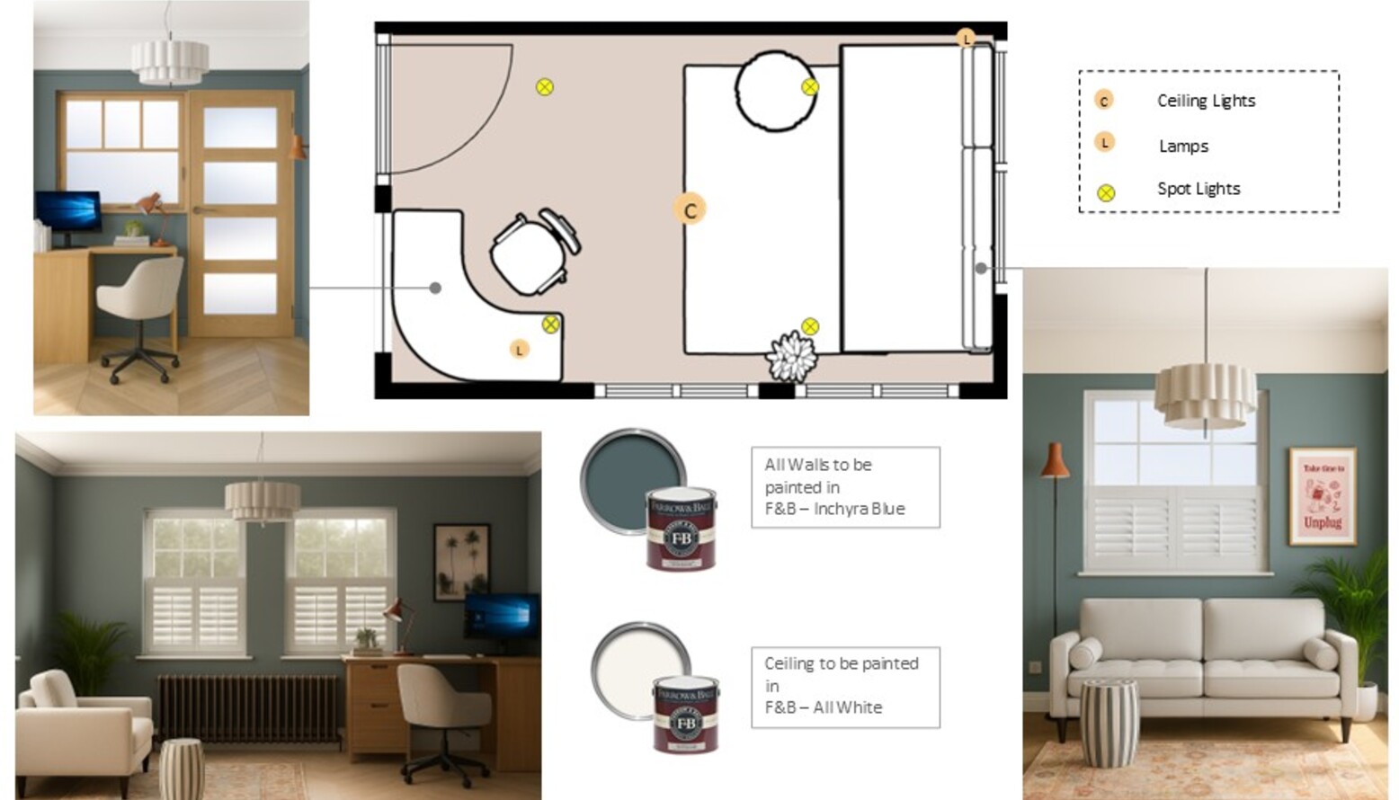 Check out this room design for our client complete with 3D visuals and floorplan.