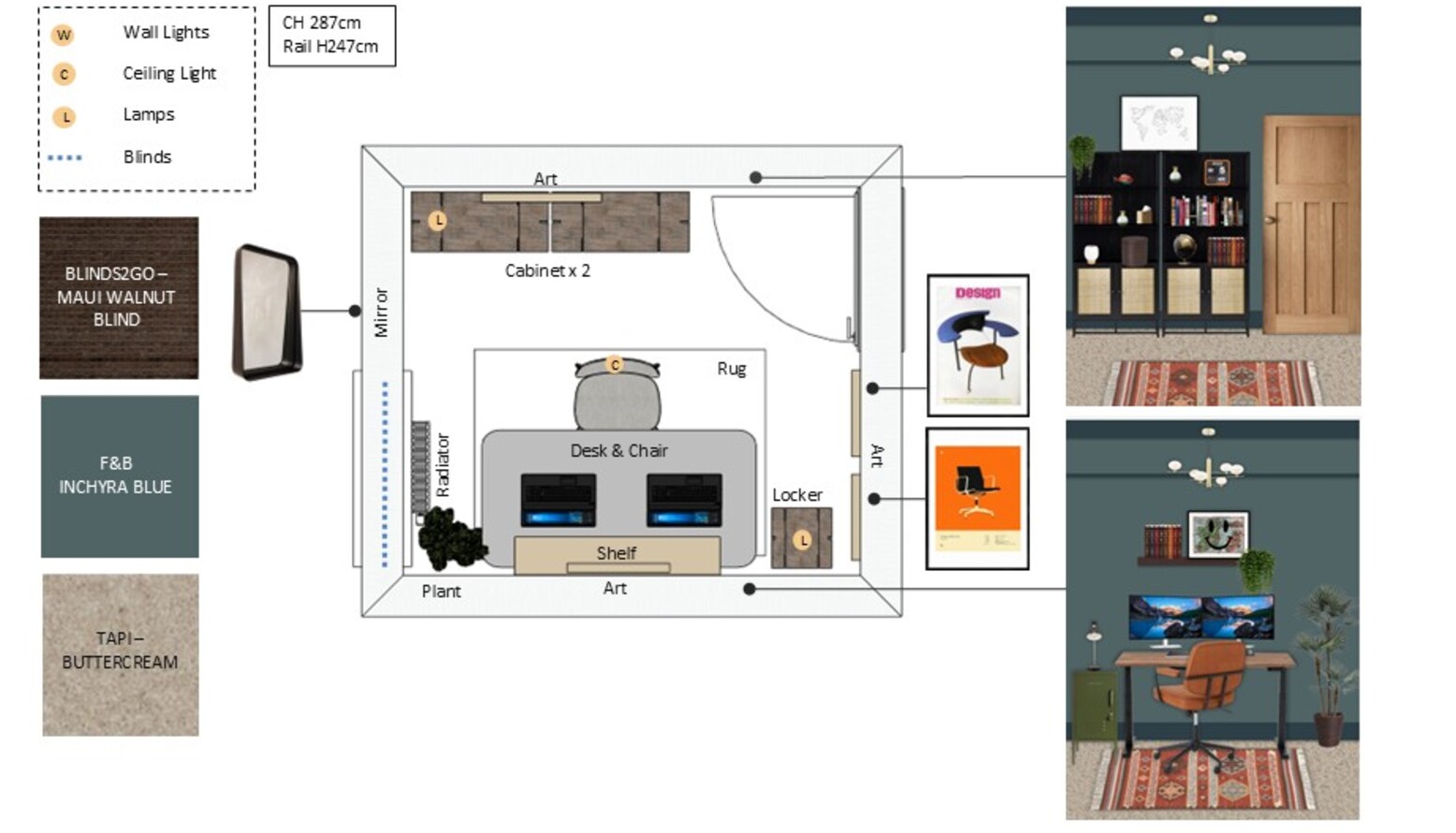 Check out this room design for our client complete with 3D visuals and floorplan.