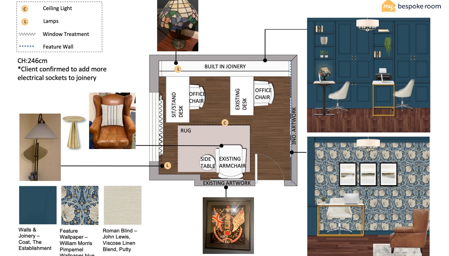 Check out this room design for our client complete with 3D visuals and floorplan.