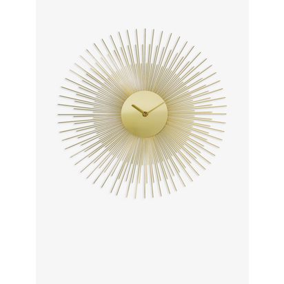 To finish the look, a Chestnut Modern Solid Wood Bedside and an array of chic cushions provide additional comfort, while a stylish wall clock in gold punctuates the decor, ensuring both functionality and aesthetic appeal.