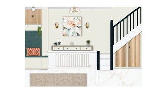 This hallway features a warm and inviting design that blends modern and classic elements effortlessly. The walls are painted in a soft, neutral tone that enhances the natural light, creating an airy atmosphere.
